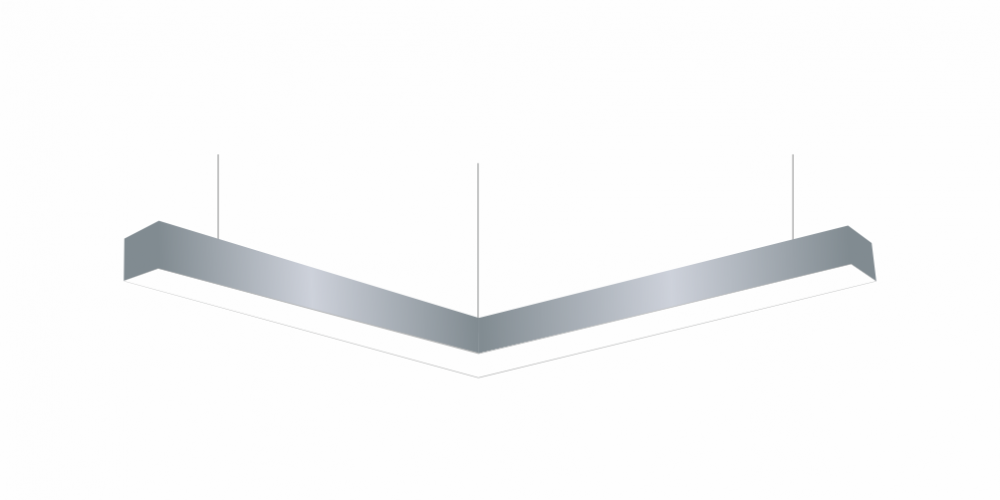 Светодиодный Угловой светильник LiNE-Pro 120гр. 1000х1000mm 40W 3000K серый предназначен для накладного или подвесного монтажа на тросовые подвесы. Изготовлен из сплошного сварного алюминиевого профиля в виде угла под 120 градусов. Высота установки светильника регулируется подвесом с цанговым тросовым зажимом и может варьироваться от 0,05 метра до 4 метров от основного потолка. Светильник имеет равномерную засветку по всей площади рассеивателя. Источник питания находится внутри корпуса. Торцевые заглушки входят в комплект. Возможно изготовление светильника с магистральной проводкой для соединения нескольких светильников в сплошную конструкцию.