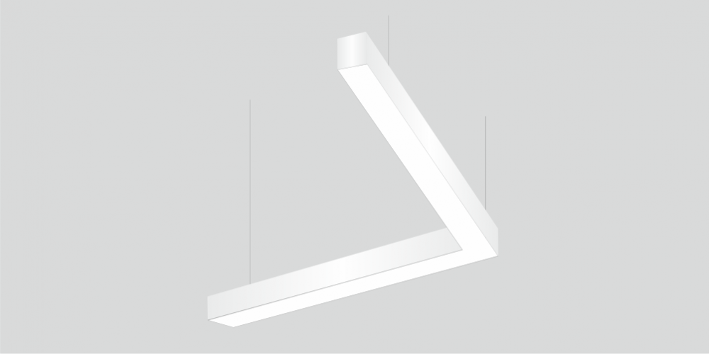 Светодиодный Угловой светильник LiNE-Pro 90гр. 750х750mm 60W 3000K белый предназначен для накладного или подвесного монтажа на тросовые подвесы. Изготовлен из сплошного сварного алюминиевого профиля в виде угла под 90 градусов. Высота установки светильника регулируется подвесом с цанговым тросовым зажимом и может варьироваться от 0,05 метра до 4 метров от основного потолка. Светильник имеет равномерную засветку по всей площади рассеивателя. Источник питания находится внутри корпуса. Торцевые заглушки входят в комплект. Возможно изготовление светильника с магистральной проводкой для соединения нескольких светильников в сплошную конструкцию.