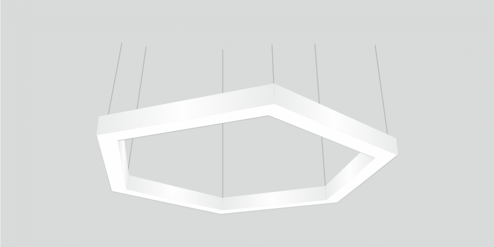 Светодиодный Шестиугольный светильник LiNE-Pro 6х500mm 55W 4000K белый предназначен для накладного или подвесного монтажа на тросовые подвесы. Изготовлен из сплошного сварного алюминиевого профиля в виде шестиугольника. Высота установки светильника регулируется подвесом с цанговым тросовым зажимом и может варьироваться от 0,05 метра до 4 метров от основного потолка. Шестиугольный линейный светильник имеет равномерную засветку по всей площади рассеивателя. Источник питания находится внутри корпуса.
