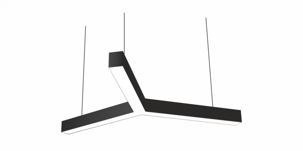 Светодиодный Лучевой светильник LiNE-Pro 3х500mm 60W 4000K черный предназначен для накладного или подвесного монтажа на тросовые подвесы. Изготовлен из сплошного сварного алюминиевого профиля в виде буквы «Y». Высота установки светильника регулируется подвесом с цанговым тросовым зажимом и может варьироваться от 0,05 метра до 4 метров от основного потолка. Светильник имеет равномерную засветку по всей площади рассеивателя. Источник питания находится внутри корпуса. Торцевые заглушки входят в комплект. Возможно изготовление светильника с магистральной проводкой для соединения нескольких светильников в сплошную конструкцию.