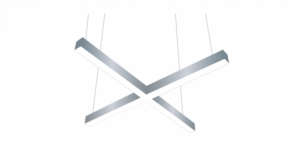 Светодиодный Лучевой светильник LiNE-Pro 4х500mm 40W 4000K серый предназначен для накладного или подвесного монтажа на тросовые подвесы. Изготовлен из сплошного сварного алюминиевого профиля в виде буквы «Х» (крестом). Высота установки светильника регулируется подвесом с цанговым тросовым зажимом и может варьироваться от 0,05 метра до 4 метров от основного потолка. Крестовой светильник имеет равномерную засветку по всей площади рассеивателя. Источник питания находится внутри корпуса. Торцевые заглушки входят в комплект. Возможно изготовление светильника с магистральной проводкой для соединения нескольких светильников в сплошную конструкцию.