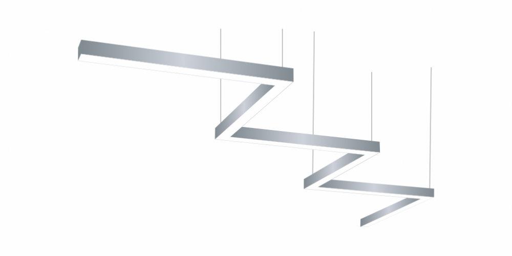 Фигурный светодиодный Светильник Зигзаг LiNE-Pro 6х500mm 60W 6000K серый предназначен для накладного или подвесного монтажа на тросовые подвесы. Изготовлен из сплошного сварного алюминиевого профиля в виде зигзага. Высота установки светильника регулируется подвесом с цанговым тросовым зажимом и может варьироваться от 0,05 метра до 4 метров от основного потолка. Светильник Зигзаг имеет равномерную засветку по всей площади рассеивателя. Источник питания находится внутри корпуса. Торцевые заглушки входят в комплект. Возможно изготовление светильника с магистральной проводкой для соединения нескольких светильников в сплошную конструкцию