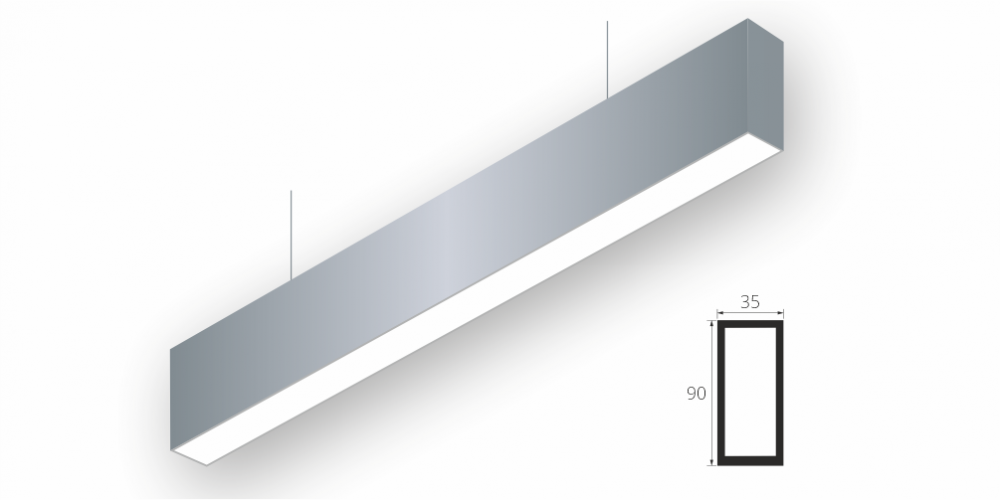 Линейный модульный светодиодный Подвесной светильник LiNE-Pro 90x35 1750mm 27W 6000K Серый предназначен для подвесного монтажа на тросовые подвесы. Изготовлен из алюминиевого профиля длиной 1750 мм, мощностью 27 Вт c цветовой температурой 6000 K, цвет корпуса Серый. Светильники соединяются в сплошную линию с помощью комплекта линейного соединения и сплошной магистральной проводки. Светильник имеет равномерную засветку по всей площади рассеивателя. Источник питания находится внутри корпуса.